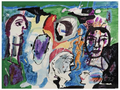 rgba(255,255,255,1) Norris EmbrySans titre (L'amour), 1972Signé et daté 'NO 72' (en bas à droite) aquarelle, encre, crayon gras et stylo à bille sur papier 46 x 60.5 cm. Inscriptions: 'Mon 9 Fri / LAMOUR N' (recto); 'Ed Benesch' (verso)