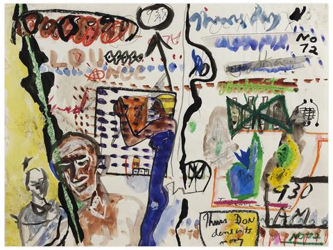aquarelle, encre, crayon gras et stylo à bille sur papier