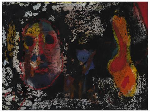 rgba(255,255,255,1) Norris EmbrySans titre (Masque aux yeux noir), vers 1977Signé 'NO' (en bas au centre) pastel gras, gouache et aquarelle sur papier 22.7 x 30.1 cm.