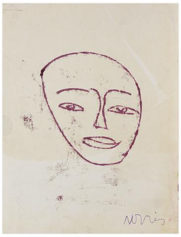 rgba(255,255,255,1) Norris EmbrySans titre (Masque), vers 1963Signé 'Norris' (en bas à droite) monotype sur papier 28 x 21.5 cm.