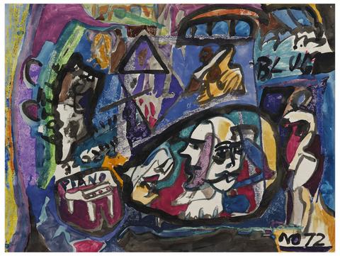 rgba(255,255,255,1) Norris EmbrySans titre (Piano), 1972Signé et daté 'NO 72' (en bas à droite) gouache, aquarelle et crayon gras sur papier 46 x 60.5 cm. Inscriptions: 'PIANO / BLUM'