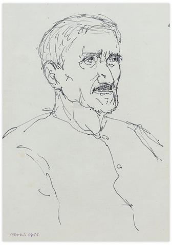 rgba(255,255,255,1) Norris EmbrySans titre (Portrait de vieillard grec en buste, trois quart à droite), 1955Signé et daté à l'encre bleu 'Norris 1955' (en bas à gauche) Encre sur papier 22.4 x 15.6 cm.