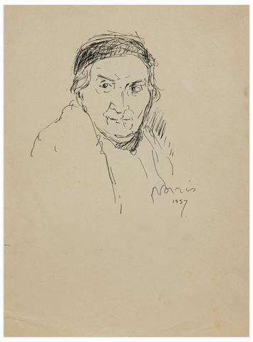 rgba(255,255,255,1) Norris EmbrySans titre (Portrait d'homme en buste, d'après Rembrandt), 1957Signé et daté 'Norris 1957' (en bas à droite) encre sur papier 31.1 x 21 cm.