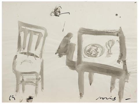 rgba(255,255,255,1) Norris EmbrySans titre (Table et Chaise), 1969Signé 'Norris' (en bas à droite), daté '69' (en bas à gauche) encre sur papier 45.5 x 60.5 cm.