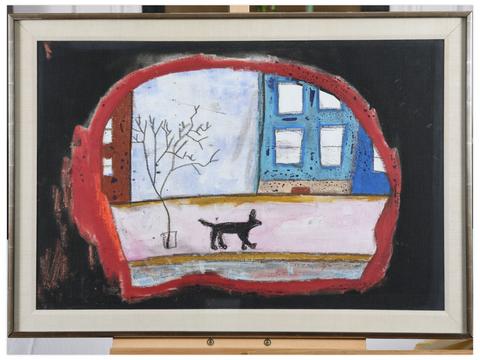 rgba(255,255,255,1) Norris EmbrySans titre (Tête et chien marchant dans la rue), 1980Non signé, non daté Acrylique, crayon gras sur carton entoilé 61 x 91,5 cm.