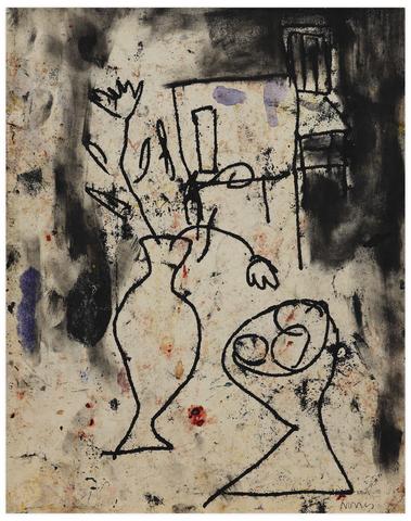 rgba(255,255,255,1) Norris EmbrySans titre (Vase de fleurs, chaise et coupe de fruits), 1956Signé et daté '56 Norris' (en bas à droite) monotype, encre et aquarelle sur papier 30 x 22.5 cm.