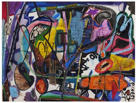 rgba(255,255,255,1) Norris EmbrySans titre (Visage de profil à gauche), 1974Signé et daté 'NO 74' (en bas à droite) aquarelle, gouache, encre, crayon gras et stylo à bille sur papier 45.5 x 60.5 cm. Inscriptions: avec le cachet de succession 'NORRIS EMBRY ESTATE' (au revers)