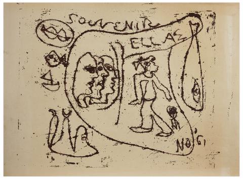 rgba(255,255,255,1) Norris EmbrySouvenir d'Hellas (Trois visages de profil et figure debout), 1961Signé et daté 'NO61' (en bas à droite) monotype sur papier 45 x 61 cm. Inscriptions: 'Souvenir EllaΣ'