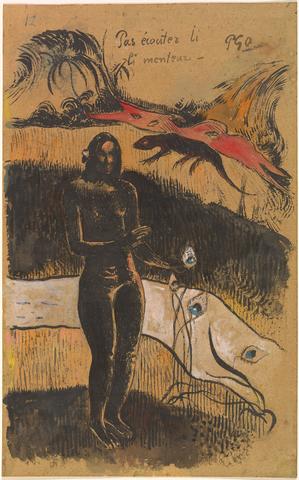 rgba(255,255,255,1) Paul GauguinNef Nef Fenua, circa 1894Gouache et encre de Chine sur papier vélin fauve foncé, 42,2 x 26,2 cm, 1894.