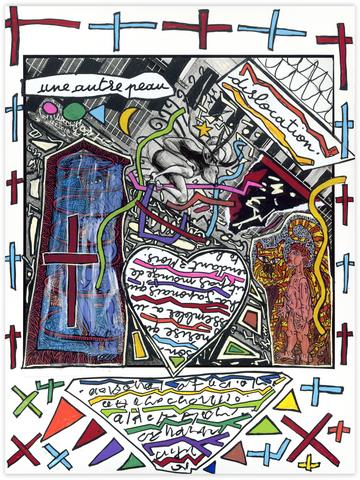 rgba(255,255,255,1) Philipp Hugues BonanSans titre (dislocation)Collage et peinture sur photo en hommage à Robert Combas, 40 x 30 cm. Demande d'information