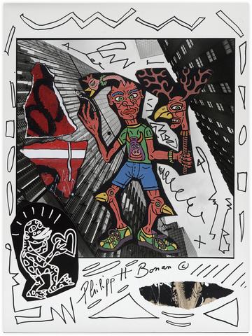 rgba(255,255,255,1) Philipp Hugues BonanSans titre (mange coeur)Collage et peinture sur photo en hommage à Robert Combas, 40 x 30 cm. Demande d'information