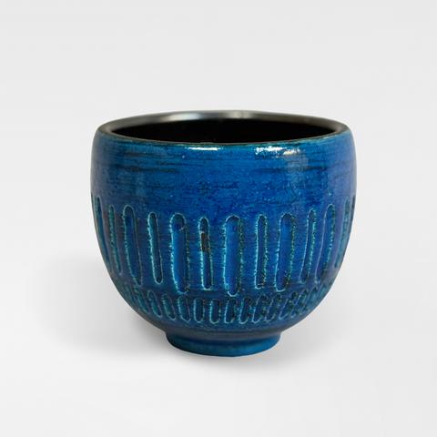 Faïence terre chamottée émail bleu et noir lustré argent.
