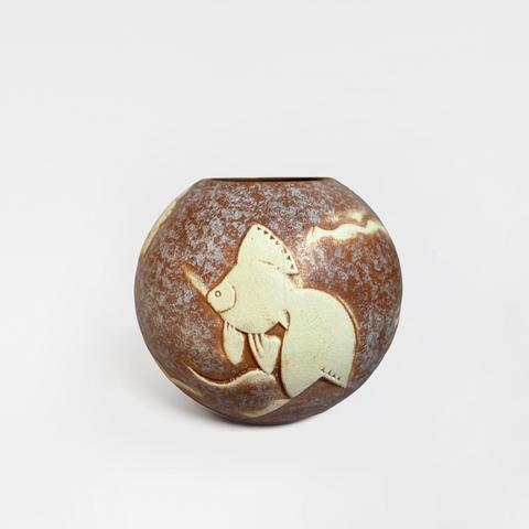 Vase boule "aquarium aux poissons“ (noir blanc) — circa 1936