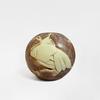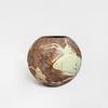 Faïence, engobe vitrifié blanc sous émail brique, voile d’engobe blanc, intérieur émail noir brillant.