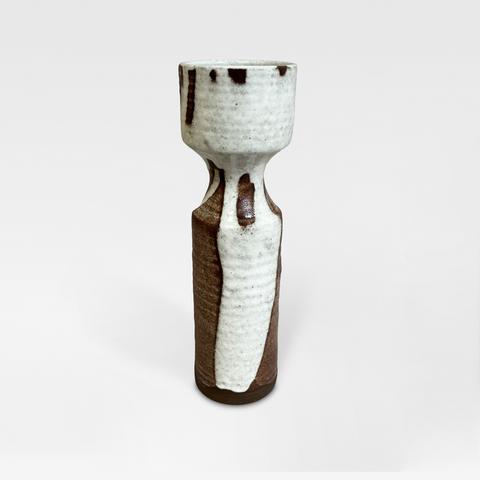 Grès, émail blanc à effets grisés et coulures sur émail brun/terre brune.