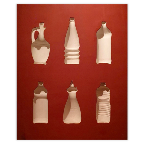 rgba(255,255,255,1) Roy AdzakFrench Oil containers, 1965Technique mixte sur toile, signé, titré, daté et situé au dos, 80 x 65 cm, 1965.
