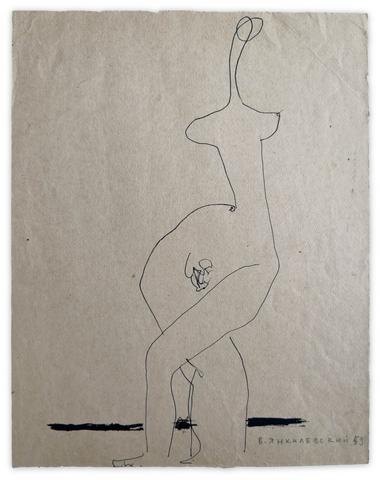 rgba(255,255,255,1) Vladimir YankilevskyModel, 1959Indian ink on paper, 37.8 × 29.5 cm.© Vladimir Yankilevsky