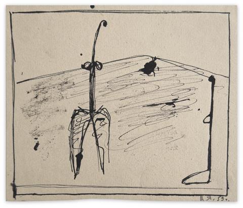 rgba(255,255,255,1) Vladimir YankilevskyWaiting, 1959Indian ink on paper, 18 × 21 cm.© Vladimir Yankilevsky
