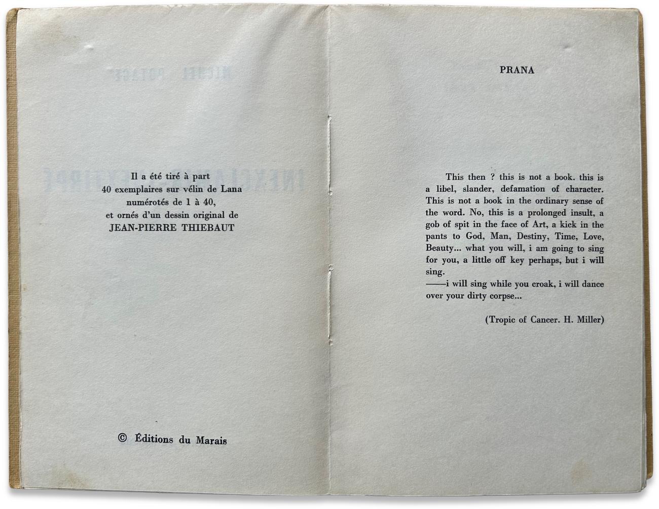 Boutique LivreLivre Inexclamir - InextirpéAUTEURMichel Potage DATEAnnée1974DESCRITPTIONMichel PotageÉDITÉ PARÉdité parÉditions du Marais, ParisFORMATÉTAT