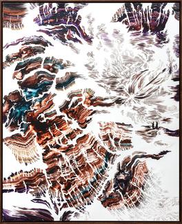 Jouant subtilement des effets d'échelle et de paréidolie, ses œuvres transforment les surfaces en de véritables espaces de résonance où se déploient flux, figures, turbulences, mondes cosmiques et paysages mentaux. Longtemps dominé par le noir et blanc et par des installations éphémères, son travail accorde désormais une place importante à la couleur, déployée dans des formats inédits, entre fresque et tableau. Abdelkader Benchamma y développe un langage fondé sur un dessin nerveux et hypnotique, nourri d'influences littéraires, ethnologiques et ésotériques, qu'il puise dans un vaste corpus de récits et d'images qu'il collecte, archive et enrichit depuis plusieurs années. Ces représentations, très diverses, alimentent le travail de l'artiste et semblent se situer à la lisière du monde connu, cet espace mouvant entre science et magie, comme un atlas insaisissable des mondes invisibles.