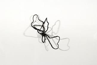 Robert Schatz freezes motion with his three dimensional drawings. With his Small Structure series, he has twisted a length of twine into poetry, freezing the looping material in the air. Taking his cues from Asian calligraphy, Schatz writes in space. Using the fragile materials jute twine and rice paper, Schatz manipulates his ethereal sculptures into a form of transitory solidity. Their meaning changes as the viewer moves around them, or as the light moves among them. Like Cy Twombly drawings, they have secrets to tell, that seem just out of the reach of our grasp, but hold our attention as we try to decipher them.