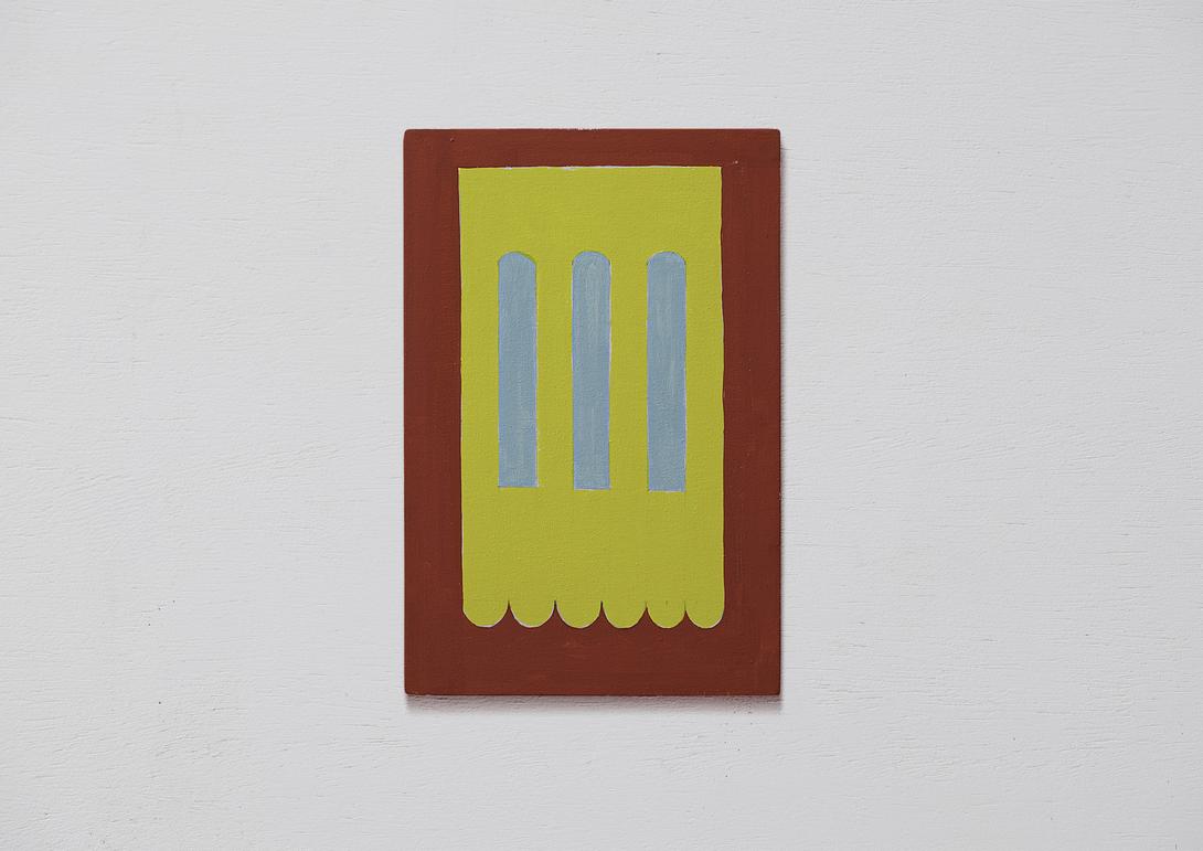 One of the series presented is built on wooden panels with layers of joint compound applied in two stages. The design of the grilles—derived from an internalized visual memory—is carved into the surface until the underlying color is revealed. When the work emphasizes color, it stands out for its optical vibration, oscillating between the stridency of Pop Art and the silence of opaque surfaces.