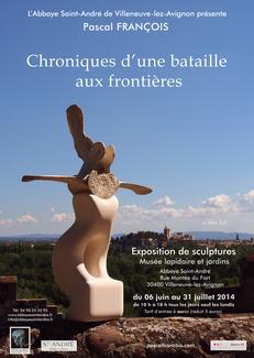 "Chroniques d'une bataille aux frontières" est une exposition de sculptures en pierre dans les jardins et le musée lapidaire de l'Abbaye Saint-André de Villeneuve-lez-Avignon.