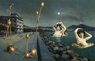 Ces découpages proviennent d'une série de sculptures murales que l'artiste a conçues dès son arrivée à Naples en 1990, au début d'un séjour de plusieurs années profondément marqué par la culture et l'histoire complexe de la ville. Comme pour nombre des collages présentés dans cette exposition, l’œuvre est guidée par le mouvement de l’eau — entraînée dans un espace de conscience fluide où convergent lumière, mouvement et mémoire.