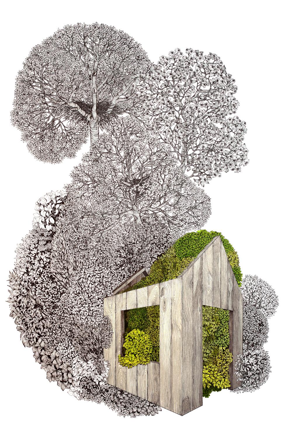 Enfin, Béatrice Meunier-Déry, examine la résilience écologique et le changement climatique à travers des démarches mêlant dessin et installation.