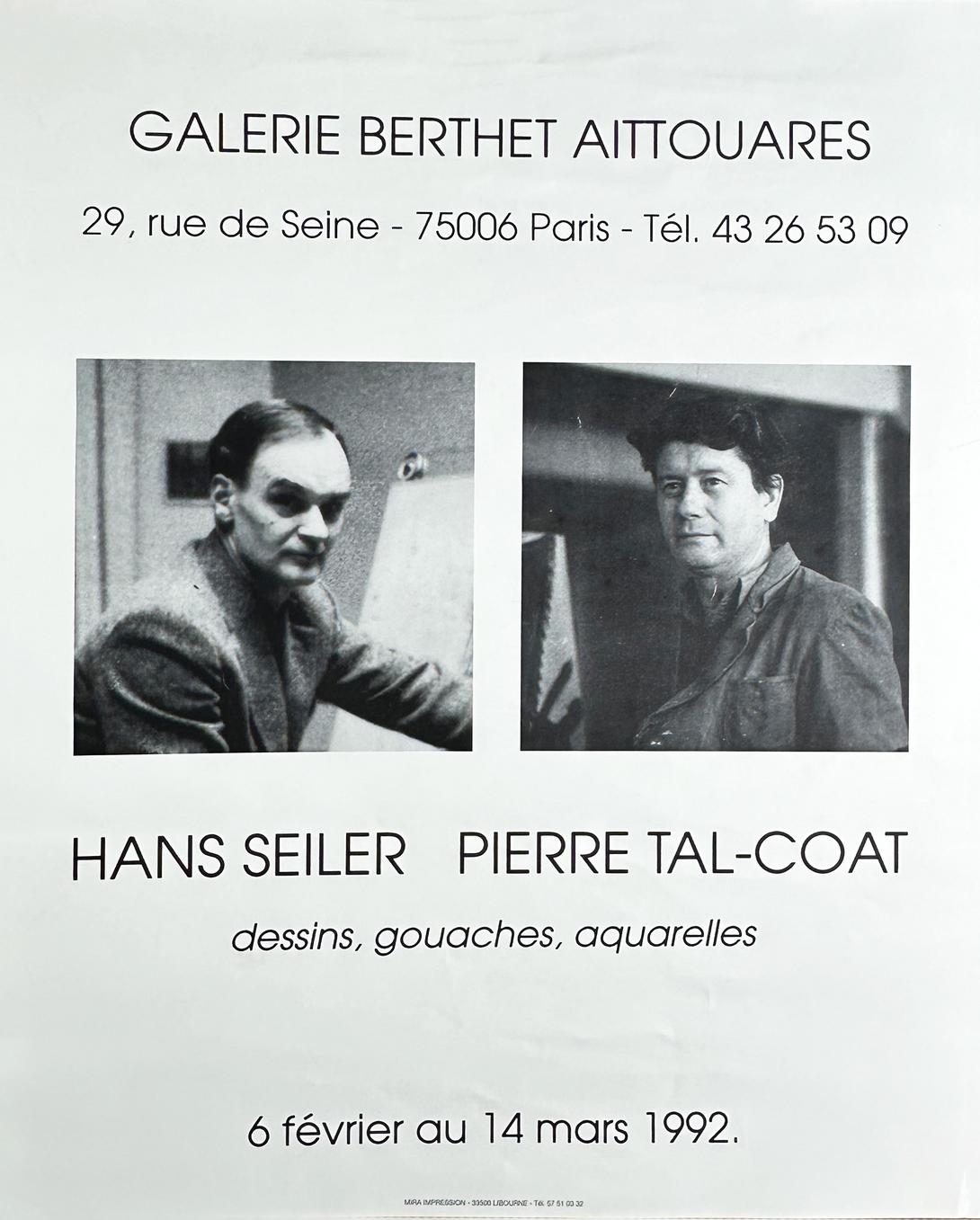Affiche pour l'exposition de Hans Seiler et Pierre Tal-Coat chez Berthet Aittouares