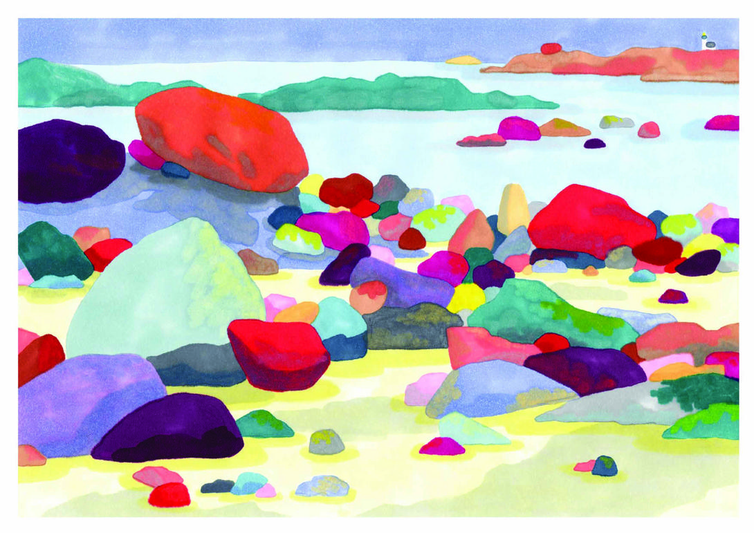 Agathe Meunier exploite avec talent le nombre restreint de couleurs de la risographie, effaçant le détail de son dessin pour laisser toute la place aux sensations chromatiques qui nous entrainent dans l’apaisement et la joie.