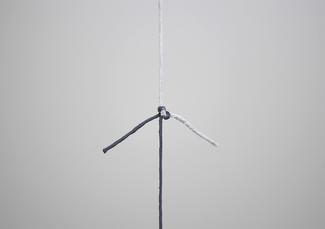 Impossible love, made of two threads, one rising from the ground, the other coming down from the ceiling, and joining in their centre, forms a minimal installation. Apart from the means used, what is emphasized is the perception of the meeting of what rises from the ground and what comes down from above, a rare and difficult encounter made possible by the artist.