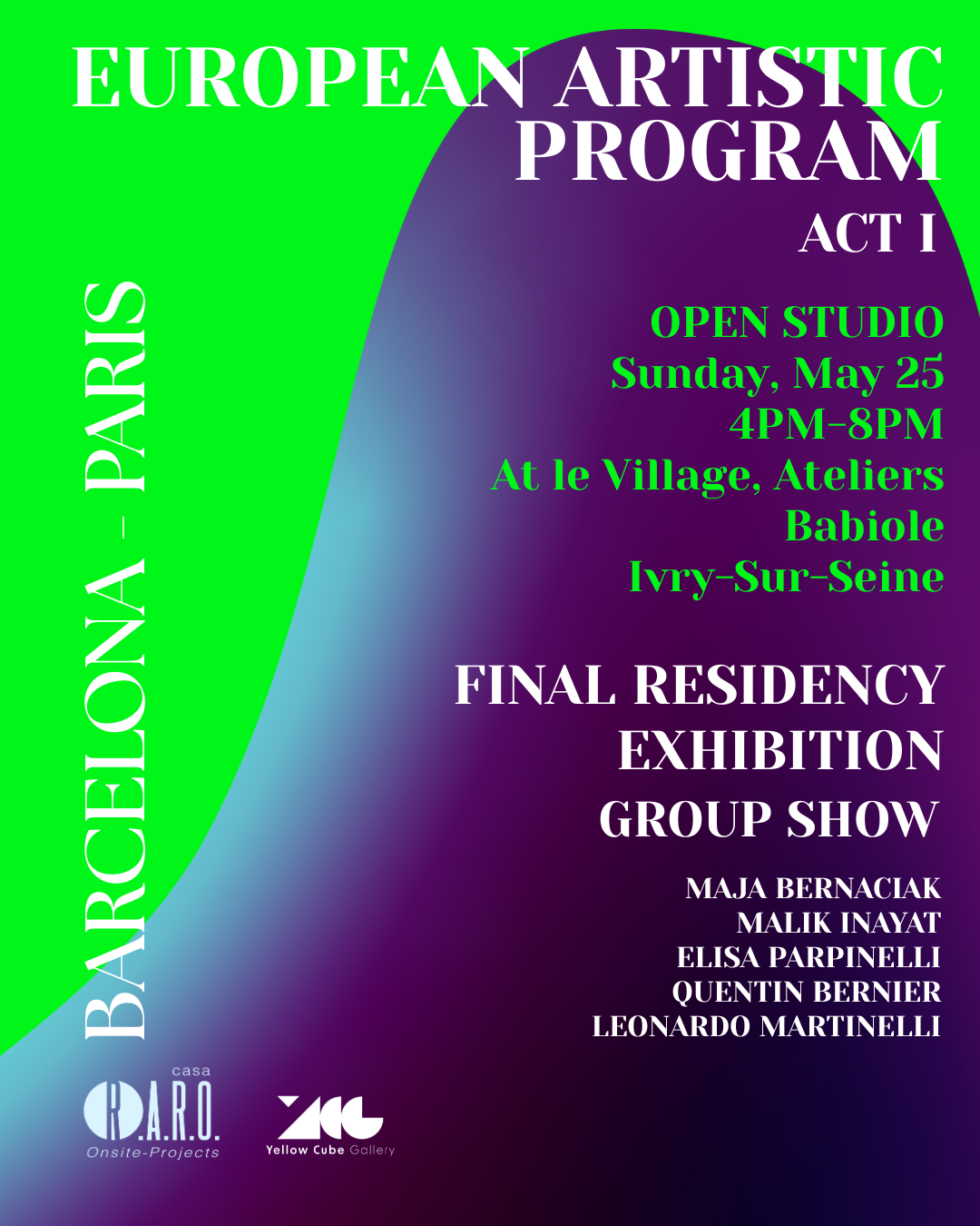 Yellow Cube Gallery, en partenariat avec R.A.R.O Barcelone et Le Village, l’Ateliers Babiole, vous invite à découvrir les artistes de la résidence #EAP2025 lors d'un événement exceptionnel :