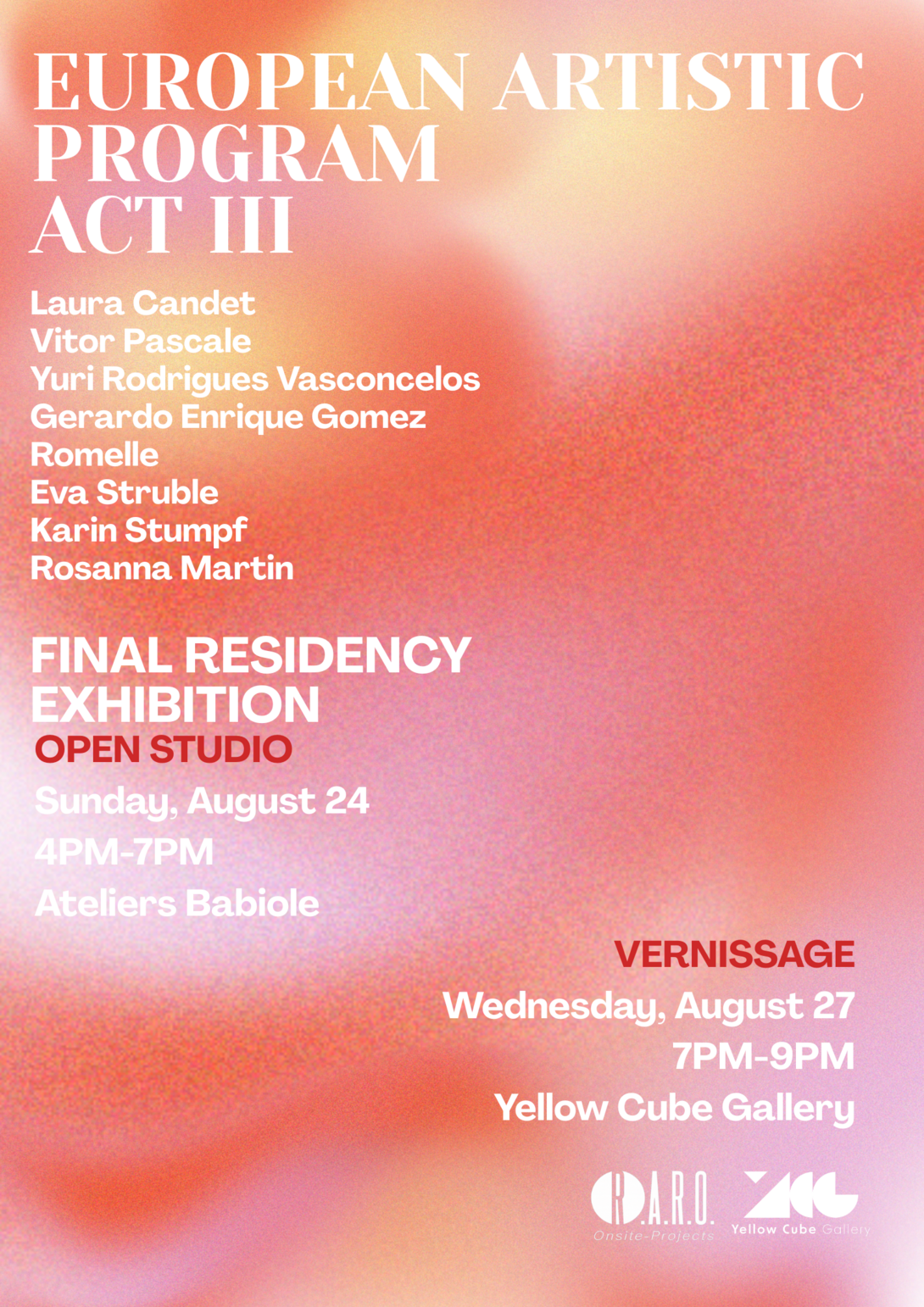 La Yellow Cube Gallery, en partenariat avec R.A.R.O. Barcelone, a le plaisir d’annoncer l’exposition finale de la résidence européenne EAP – Act III, qui marque la sixième édition de ce programme nomade.