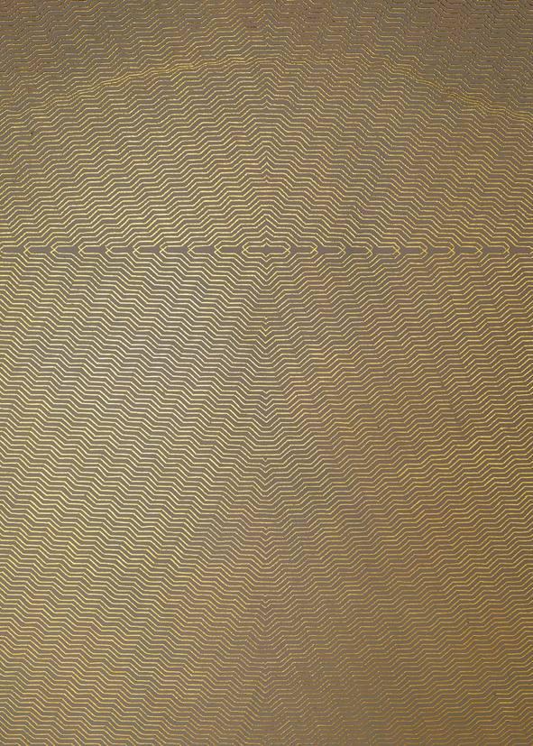 "Passerelles entre les techniques et les mondes, entre l’esprit et la matière, ses œuvres s’appuient sur les cultures sacrées, tant occidentales qu’orientales. Avec l’usage de l’or, symbole de la lumière métaphysique, c’est cette intensité vibratoire vers l’abstraction et une géométrie de l’invisible qu’il recherche. Ses œuvres convoquent des symboliques très fortes à partir de ces formes primordiales : elles se télescopent pour jouer avec notre appréhension optique voire haptique. Les motifs et textures mis en exergue par Arthur Lambert deviennent des systèmes solaires et cosmiques où la saturation des lignes s’allie à une dimension spirituelle."