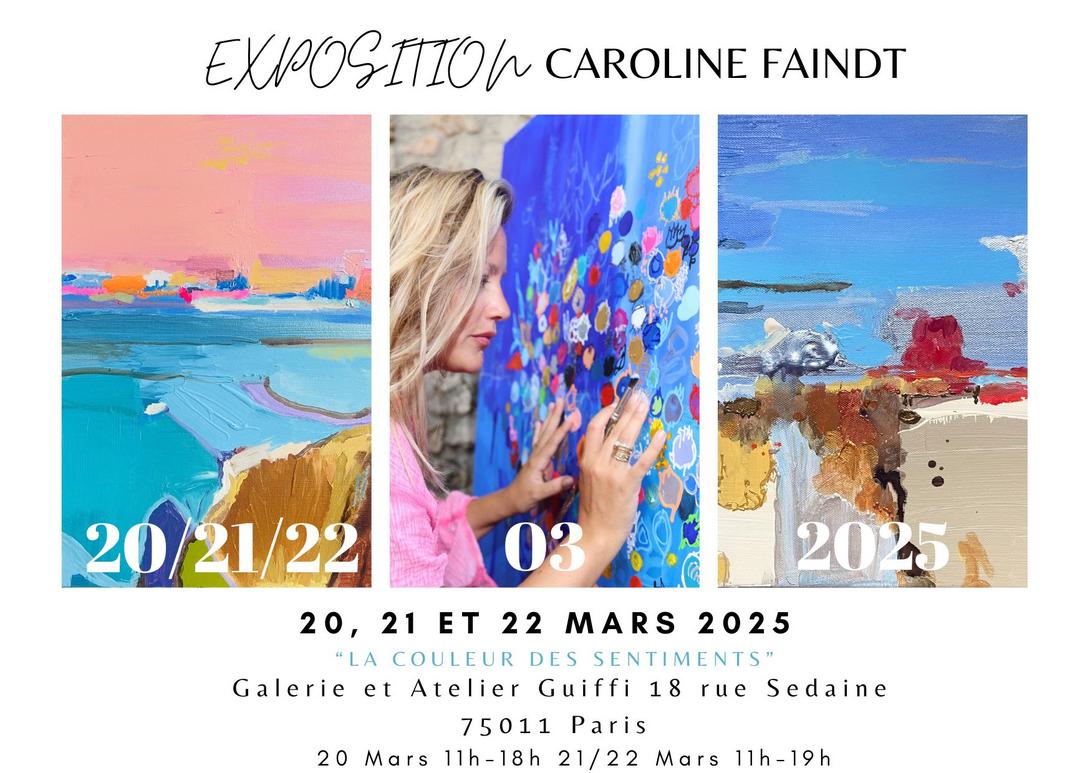 Caroline Faindt a déjà exposé en France, au Maroc, en Belgique, en Hollande et au Luxembourg et ses toiles ont déjà rejoint des collectionneurs dans de nombreux pays. Venez la rencontrer les 20, 21 et 22 Mars à Paris !