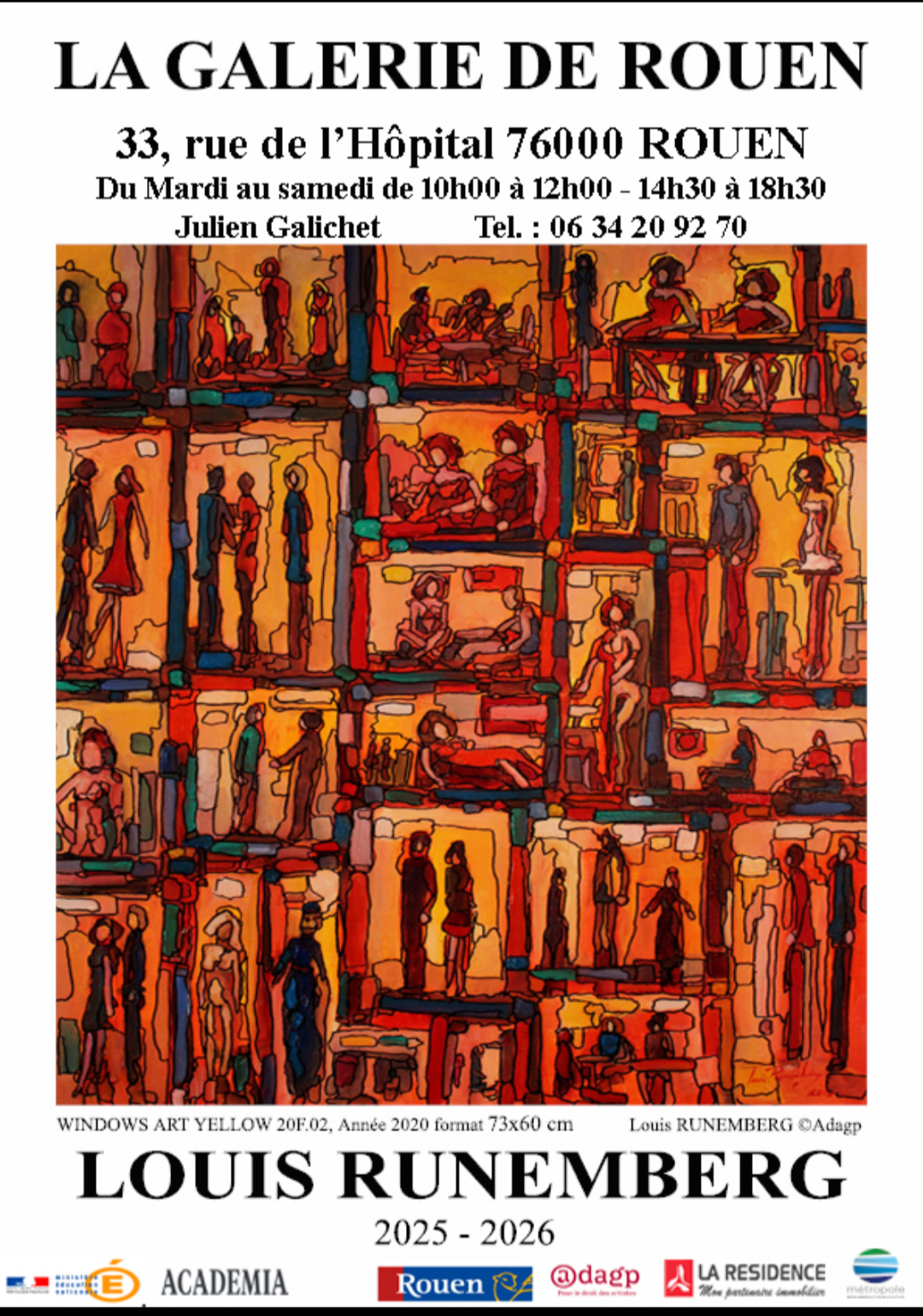 Julien Galichet le directeur de la Galerie présente Louis RUNEMBERG artiste peintre créateur du concept "Windows Art", référence de l'histoire de l'art dans l'éducation nationale avec l'oeuvre "Manhattan 11 septembre 2001", référence de l'histoire de l'art avec "Vénus Fauve" livre French Vénus de K. Binder.