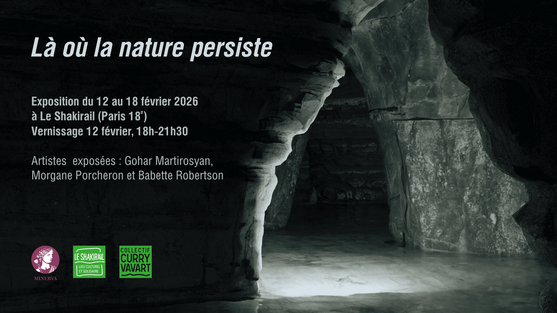Du 12 au 18 février 2026, l’association MINERVA organise l’exposition Là où la nature persiste au Shakirail, présentée sous le commissariat de Francesca Rozzi et réunissant les œuvres de trois artistes : Gohar Martirosyan, Morgane Porcheron et Babette Robertson.