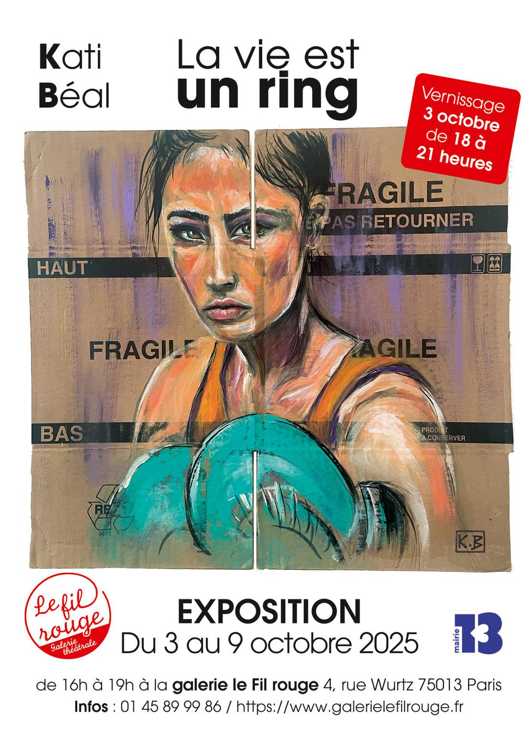 À travers l’allégorie de la boxe, Kati Béal, artiste peintre Parisienne, transmet un message interrogateur sur la posture de la femme dans notre société.