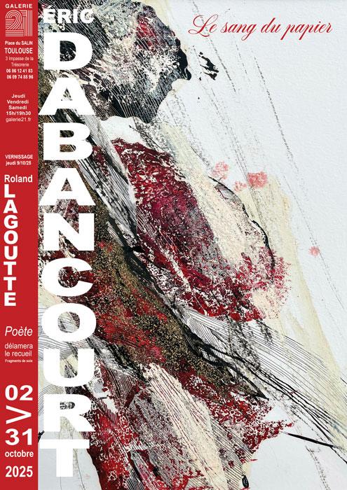 Dans cette exposition « Le sang du papier », nous avons souhaité vous présenter le travail de cet artiste, Éric Dabancourt côtés du recueil « Fragments de soie » du poète Roland Lagoutte.