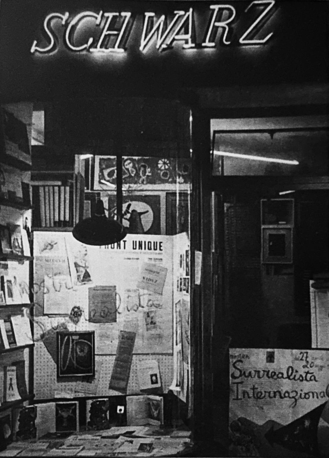 D'abord librairie, le lieu s'est mué en galerie et accueille la première exposition internationale du Surréalisme. Organisée par Arturo Schwartz avec Jean-Jacques Lebel, l'exposition accueille un ensemble d'oeuvres : des tableaux, des objets, des dessins et collages, des lithographies ainsi que des Cadavres Exquis.