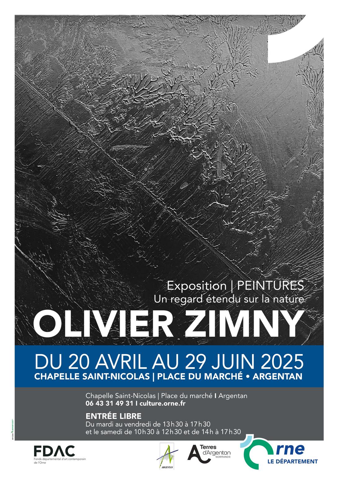 Dans sa peinture, Olivier Zimny cherche des équivalences plastiques des lois cosmiques ; des lois qui consistent à des interactions, des répulsions, des confrontations, des collisions, mais aussi à des développements et des accords matériels et spirituels qu’il observe dans l’existence des choses et de l’homme lui-même en tant que partie intégrante du cosmos ; enfin, à des forces qui interviennent dans l’équilibre et l’ordre de l’univers.