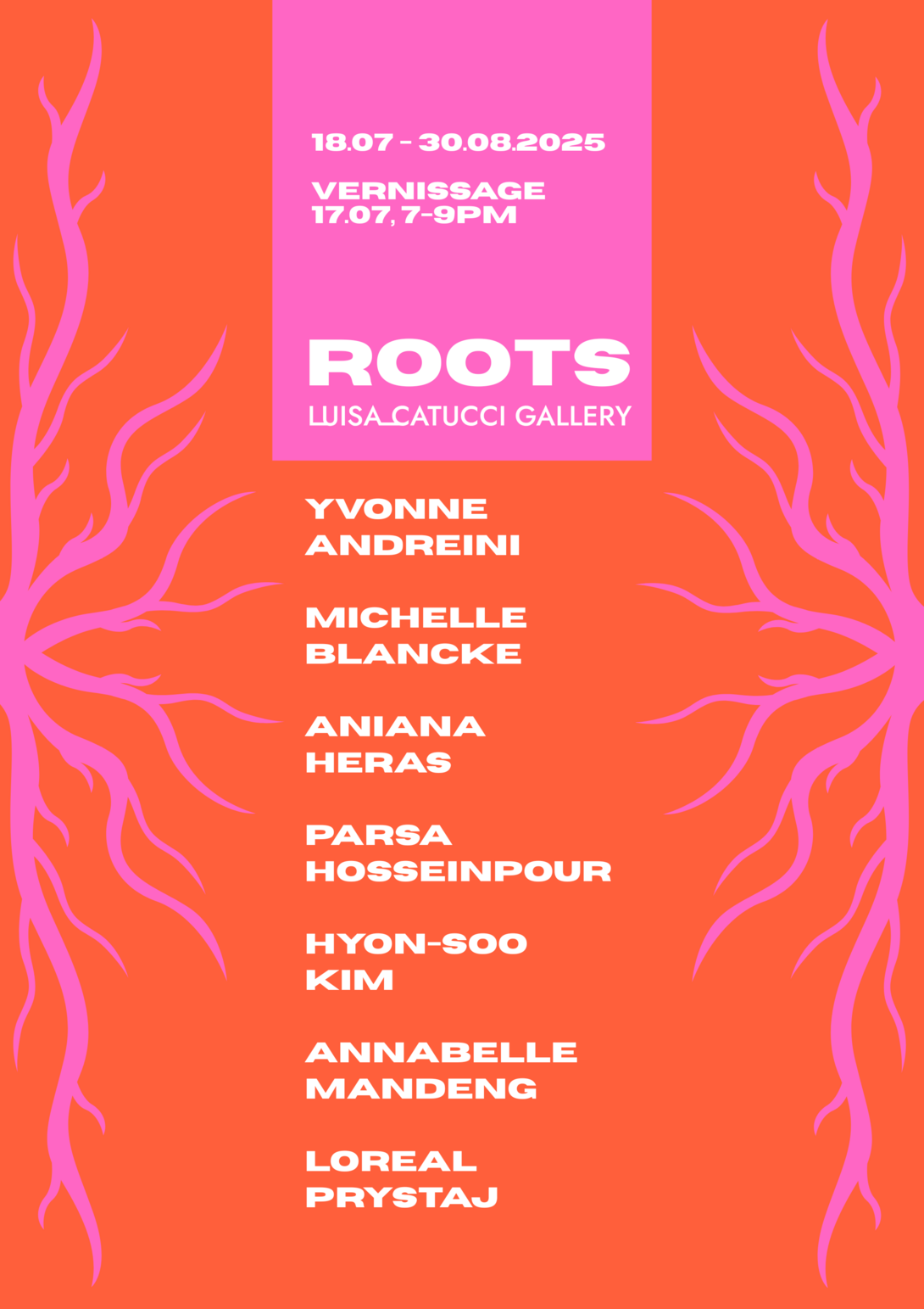 This year, we are thrilled to present ROOTS, featuring seven exciting, positive, and dynamic artists: Yvonne Andreini, Michelle Blancke, Aniana Heras, Parsa Hosseinpour, Hyon-Soo Kim, Anabelle Mandeng, and Loreal Prystaj.
