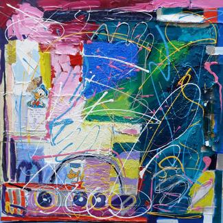 STAY IN THE WARM TODAY. Mixed Media on Canvas.100 x 100 cm. F G Davis 2012.
