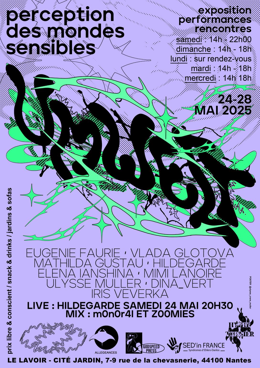 Avec les artistes Eugénie Faurie, Mathilda Gustau, Vlada Glotova, Hildegarde, Elena Ianshina, Mimi Lanoire, Ulysse Müller, Iris Veverka, et la participation des membres de l’association de patients SED’in France Loire-Atlantique.