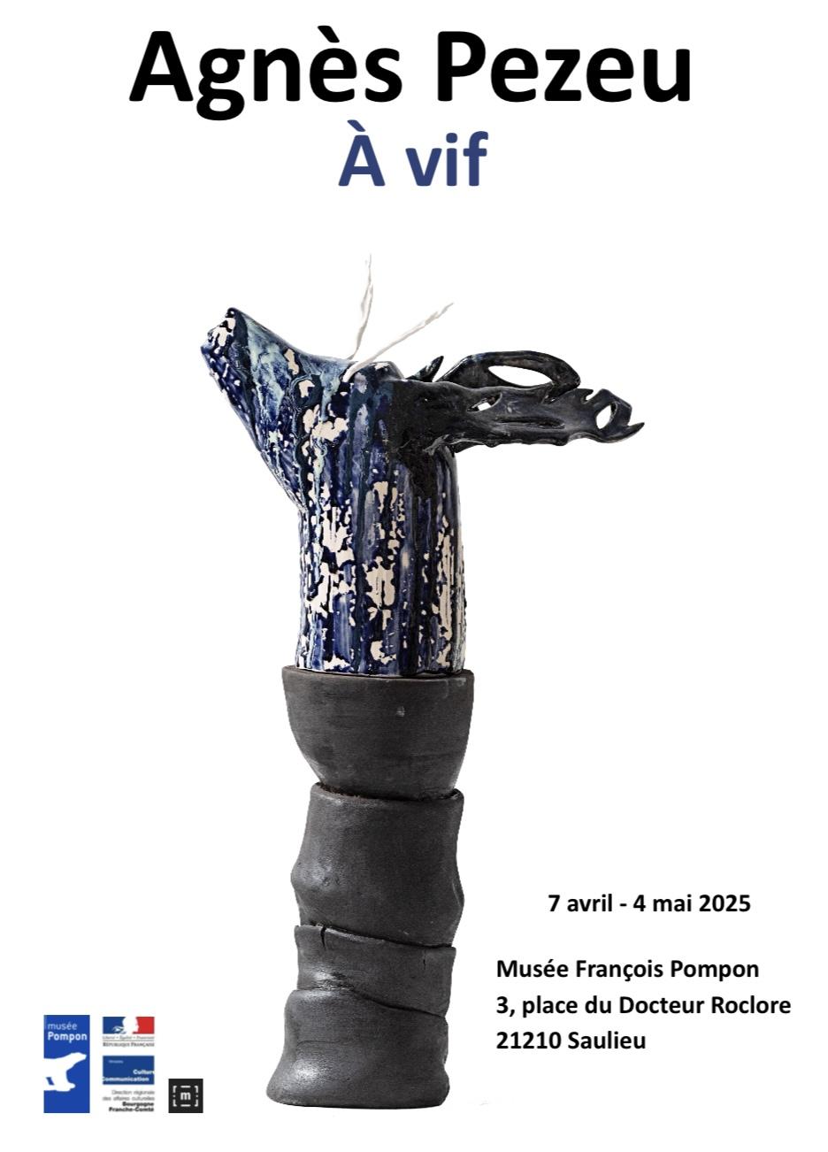 Dans l'exposition A VIF, Agnès Pezeu investi le Musée en dialoguant. avec les sons imaginaires que les animaux (de François Pompon) pourraient produire . Sont installés dans les salles du musée, des peintures, à l'échelle 1 des grands animaux dont elle a pris le contour, des sculptures en céramique, des installations en porcelaines et une vidéo.